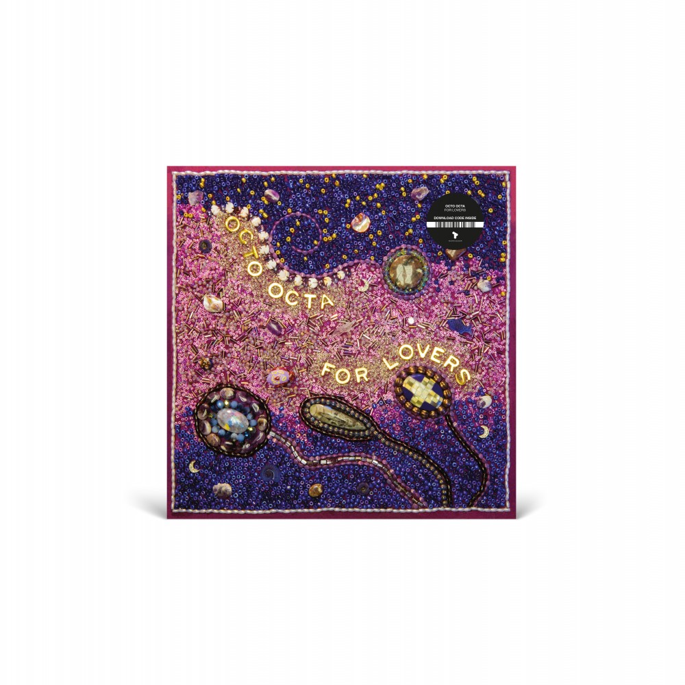 12” black white card sleeve with spine - holes both sides. Product sticker on to left corner. 12” black vinyl, white label.