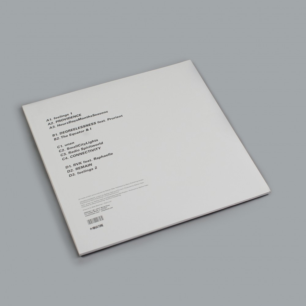 Providence sees the British producer collaborate with vocalists for the first time, joining forces with Prurient (aka Vatican Shadow / founder of Hospital Productions) and Raphaelle Standell-Preston from Braids. Both arose from chance meetings in Geneva and Osaka as their tour schedules crossed. Prurient contributed the heavily distorted vocal to ’DEGREELESSNESS’ - “I was a huge fan of Dominic’s [Prurient] music before we met and I love the way he situates his vocals in his productions. I really like how you can’t make out what he’s saying at all…” - whilst Raphaelle, who lends her voice to ‘RVK’, was introduced to Nathan by their mutual friend Jon Hopkins. “I deliberately kept the first half of the track instrumental and I love the way her vocal lands,” he says. “It’s quite unexpected when she starts singing.”