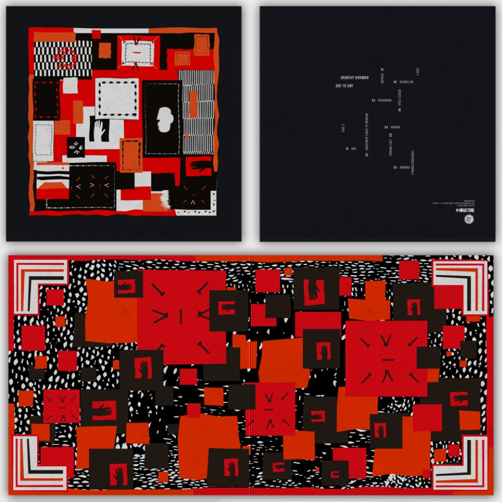 Working the angles in London’s jazz scene, Sarathy connected with Shabaka Hutchings (Sons of Kemet, The Comet is Coming), Cara Stacey (Kit Records) and played with clarinettist Arun Ghosh. He was, however, itching to create under his own name and he started researching and formulating the concept for Day To Day and planning a trip to India to record the Sidis. It was late in 2014 when Sarathy heard about the Steve Reid Foundation. He applied with a three-minute video explaining his vision for the record and was accepted onto the project to be mentored by the foundation’s patrons: Four Tet, Floating Points, Gilles Peterson, Koreless and Nick Woodmansey (Emanative).